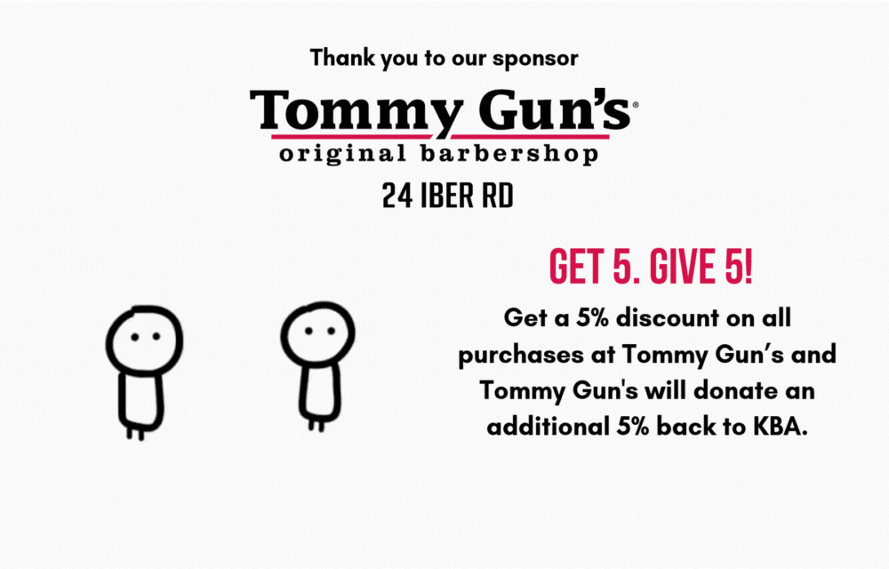 But that’s not all — Tommy Gun’s will also donate an additional 5% back to KBA with every purchase. | ![]() |